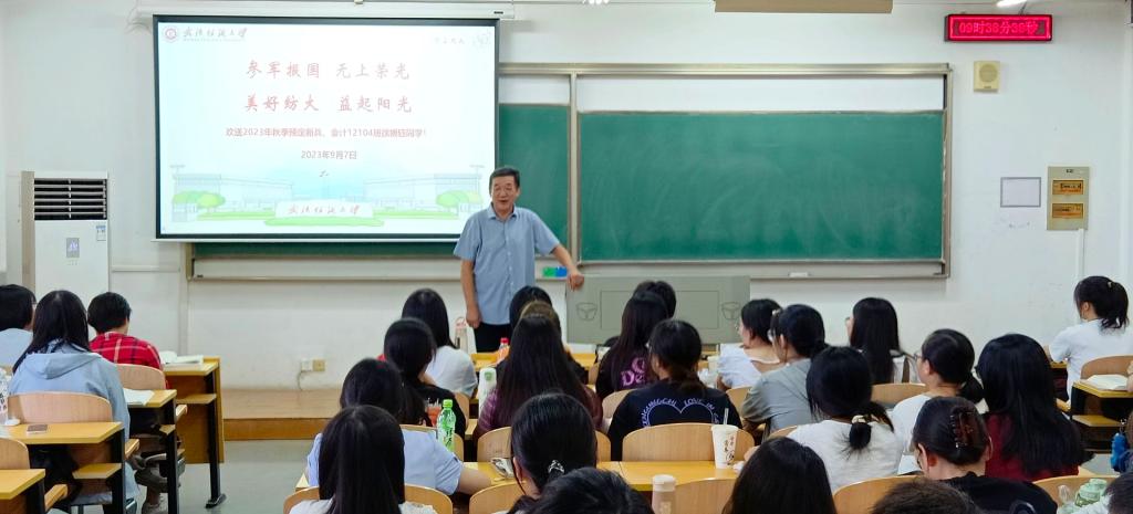 为勉励更多青年学子携笔从戎,为祖国强军事业贡献青春力量,9月7日上午,我院在阳光校区崇志楼414教室召开2023年秋季预定新兵交流会。院党委书记杜国良、院党委副书记古江波、会计系教师刘容霞、会计12104班班主任陈宇凡以及2021级会计学专业学生参加活动。