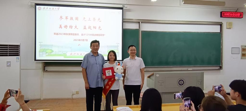 2023年秋季预定新兵、会计12014班徐婉钰同学表示,参军报国是一件无上光荣的事情,非常感谢学校和学院的培养,也非常感谢全体的辛勤教导以及同学们的帮助和陪伴,“我一定会自强不息、百炼成钢,在军营里书写绚烂无悔的青春篇章。”