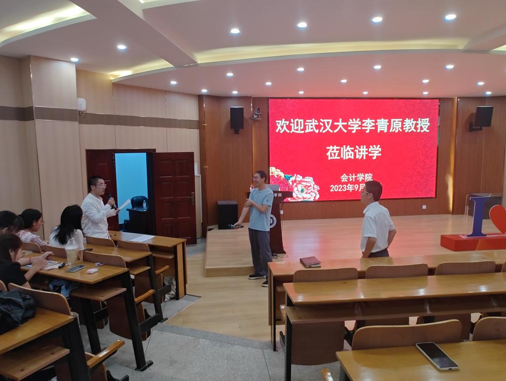课堂邀请到武汉大学李青原教授做“会计信息与资源配置”主题讲学,李青原教授是国家高层次人才计划特聘教授,武汉大学经济与管理学院二级教授(珞珈特聘)、博士生导师、国家社科基金重大项目首席专家、哥伦比亚大学访问学者,先后入选中组部、教育部、财政部人才项目。先后主持1项国家社会科学基金重大项目、5项国家自然科学基金项目(其中1项为国家自然科学基金重点项目),曾在《Review of Financial Studies》、《Contemporary Accounting Research》、《经济研究》、《管理世界》《经济学(季刊)》等重要学术杂志上发表学术论文60余篇。