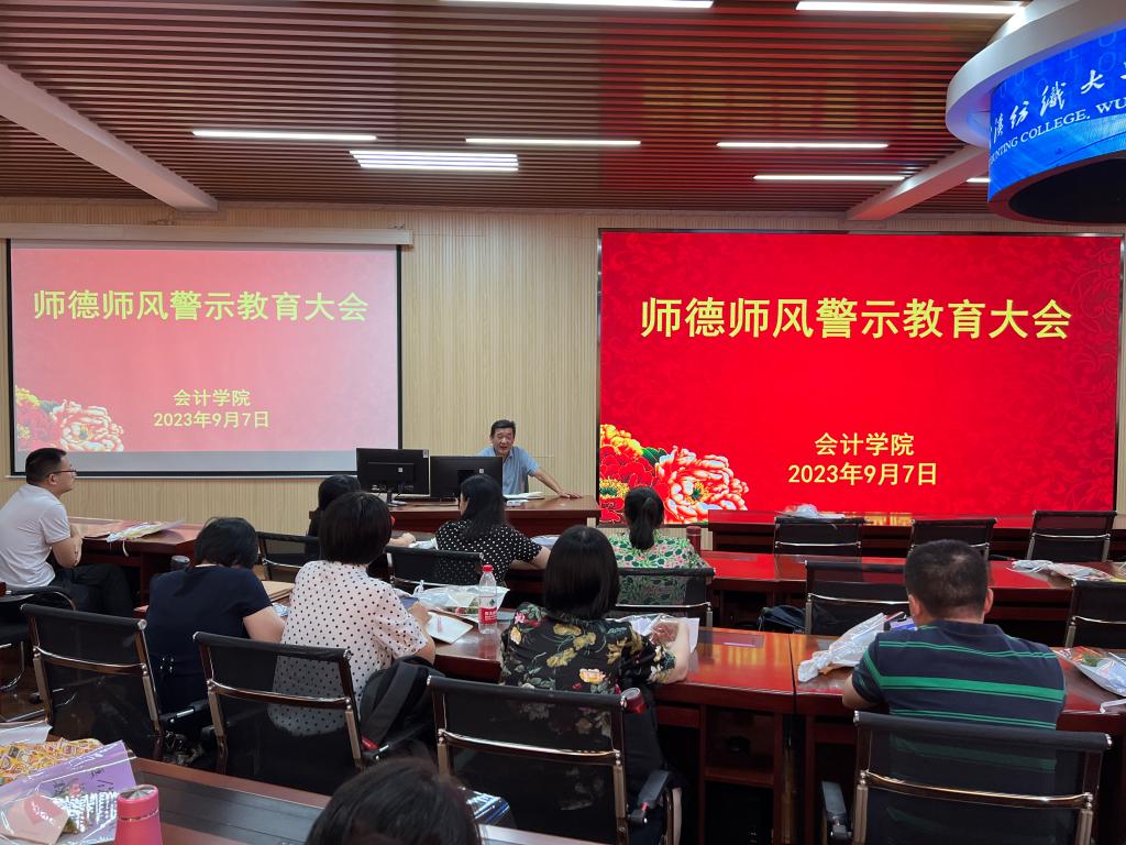 会议最后,杜国良组织教职工开展师德师风专题教育。他剖析了学校违反师德师风建设的典型案例材料,强调了师德师风建设的重要性,要求教职工在今后的工作中坚守立德树人初心,恪守廉洁从教底线,争做一名以德立身、以德施教的好老师,为学院教育事业发展贡献自己的力量。