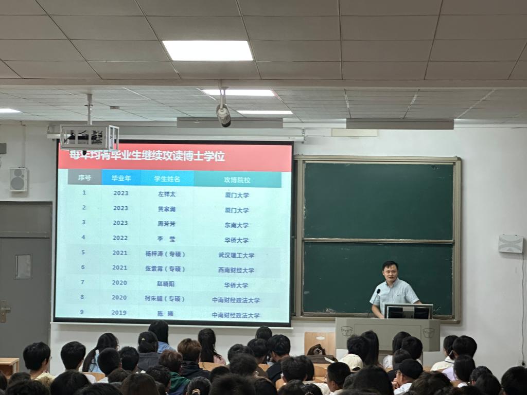 本次宣讲会上,杜国良书记对武汉纺织大学以及yl23455永利官网进行了详细的介绍,让到场的同学对武汉纺织大学有了一定的了解。接下来,任俊霖副教授从yl23455永利官网的学科特色、师资团队、科研成果、招生计划、奖助学金、毕业去向等方面对yl23455永利官网进行了全面介绍,并以自己亲身经历对同学们考研学习以及未来的发展方向提出针对性建议。