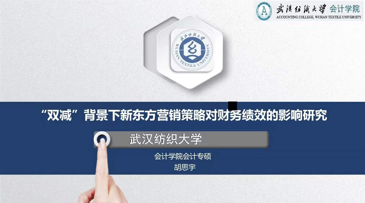 胡思宇分享的论文研究主题是《“双减”背景下新东方营销策略对财务绩效的影响研究》,她具体介绍了论文的研究背景、研究意义、国内外研究现状、研究内容和研究重难点与创新点。吴莎老师提出的建议是详细调研分析新东方的定位,思考是否继续以教育行业为切入点来研究。