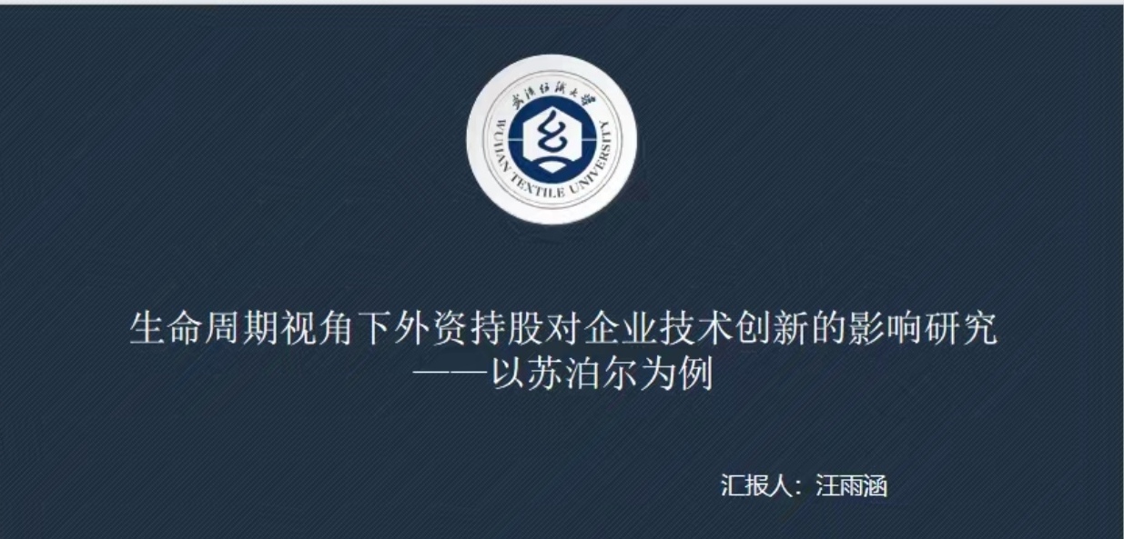 汪雨涵同学分享的论文主题是《生命周期视角下外资持股对企业技术创新的影响—以苏泊尔为例》,汪雨涵同学向我们介绍了该论文的研究背景、研究意义、研究内容、研究方法和创新点。万军老师指出论文的创新点不够突出,需要思考如何在经典话题的研究下突出新的创新点。