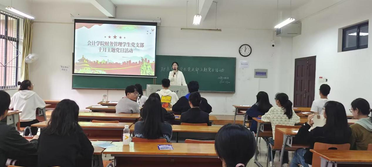 10月12日,财务管理学生党支部开展了主题党日活动。会上,财务管理学生支部书记带领全体党员共同学习习近平总书记对宣传思想文化工作所作重要指示精神等。