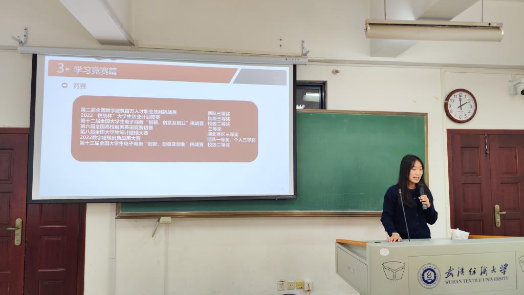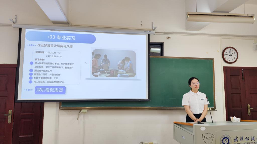 经个人申请、班级评议,会计12103班郑思佳、智能财务12101班黄金钰、CMA12101班张婧轩、工程造价12101班张靖、工程造价12102张佳怡等五名同学参加答辩。同学们依次上台,从政治表现、课程学习、学科竞赛、创新研究、专业实习、社会实践等方面汇报了自己一年来的经历和成长。
