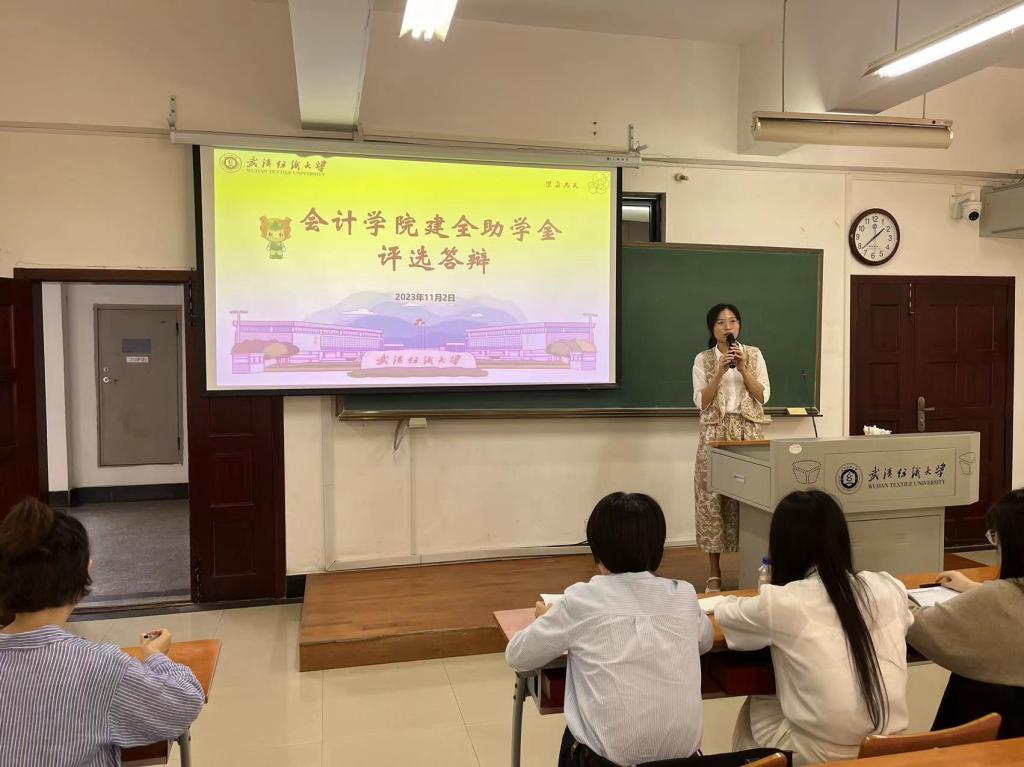 11月2日下午,我院在阳光校区崇德楼107教室举行2023年建全助学金评选答辩会。班主任代表杨孙蕾副教授、漆俊美博士、蒋炳蔚博士,辅导员张秋实、陈宇凡以及学生代表ACCA2002班程娜、工程造价12001班何路云参加活动并担任评委。
