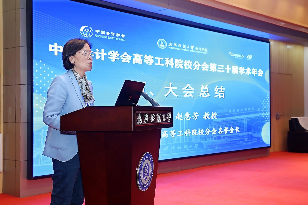 赵惠芳教授在总结发言中表示,本次年会的顺利召开,为高等工科院校会计专业适应时代变化进行技术创新、产业融合、人才培养与学科建设提供了宝贵经验,与会专家学者在交流研讨中产生新思路、构建新方法、提出新举措,将有助于会计学科在服务中国式现代化中继续传承与发展。