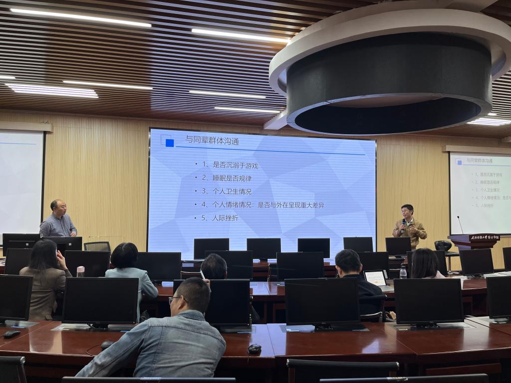 杨子云首先从身边的学生真实案例入手,呼吁与会的老师们关注日益凸显的大学生心理问题,介绍在面向大学生开展心理工作时应具备的六大专业素养,特别是如何识别危机至关重要做到抓早抓小。随后,杨子云从心理问题的识别与发现、鉴别与评估、干预与应对这三方面入手,向在座的老师们分析为什么有些大学生会陷入困境、不同心理问题的特点、危机的处理流程以及如何做好家校联动,共同做好心理协同育人。