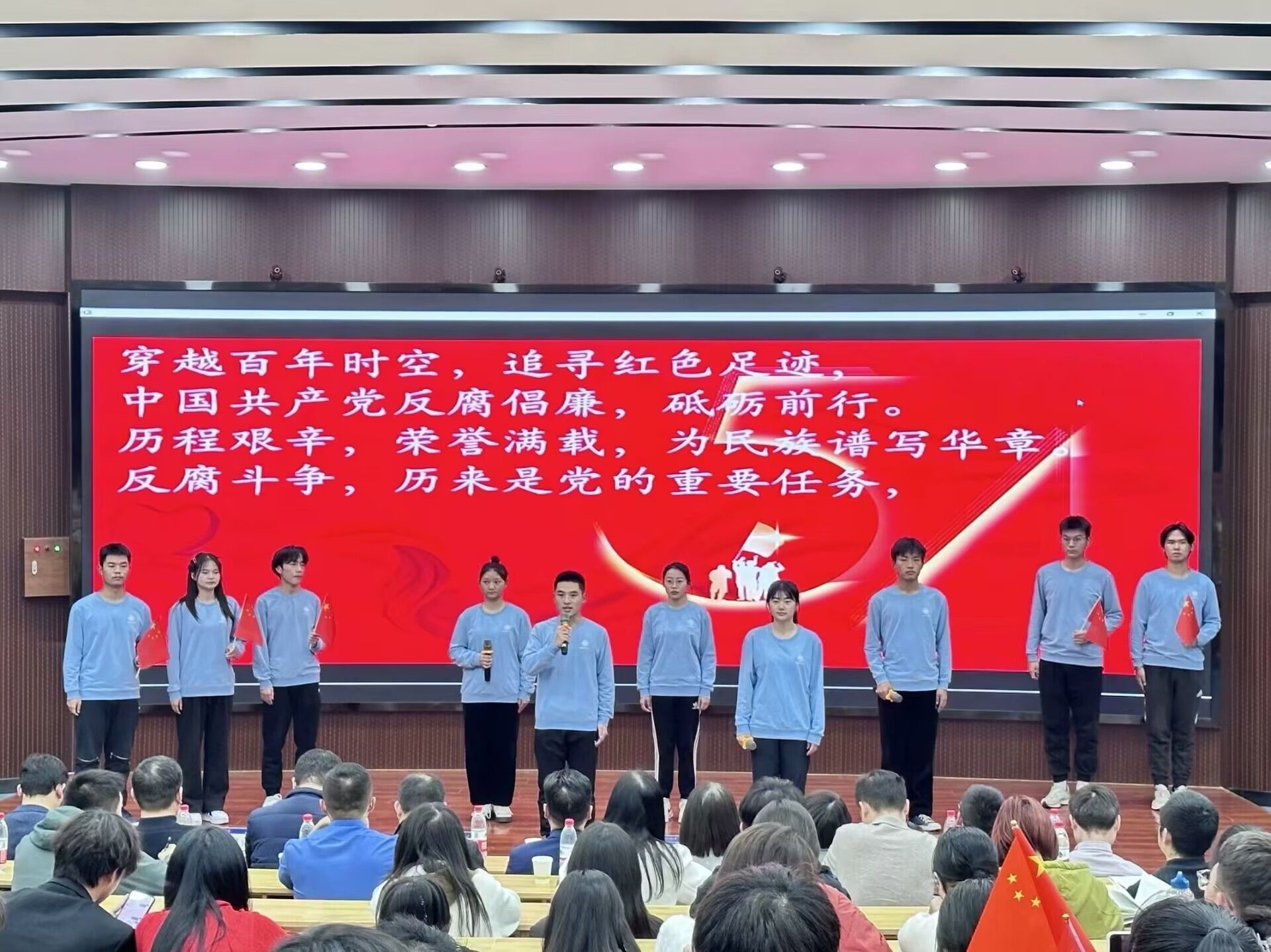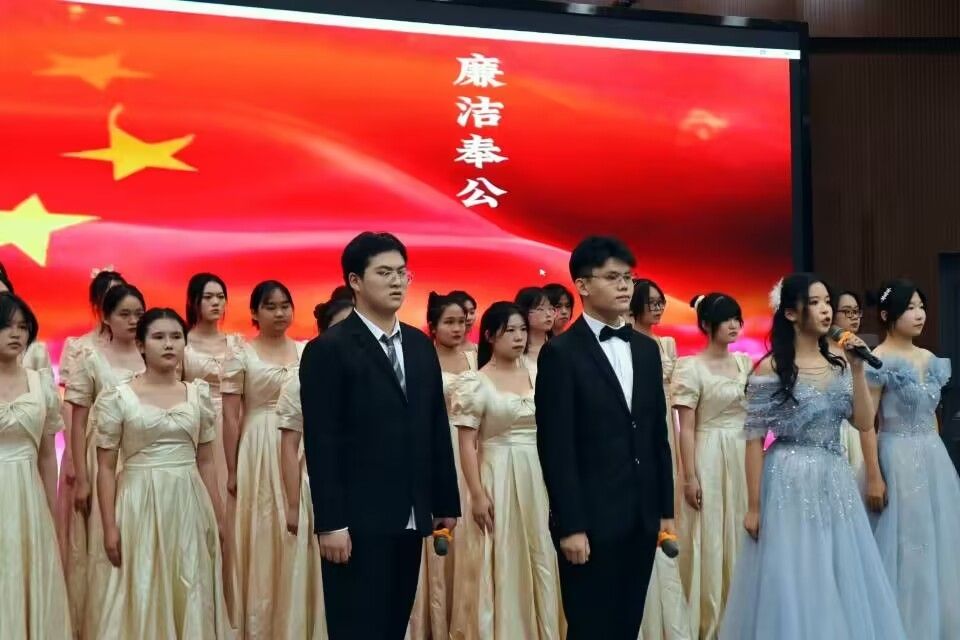 (管理学院以“廉洁之声”为题,在高亢的诵读声与歌声中展现出青年大学生倡廉戒奢的良好风貌)
