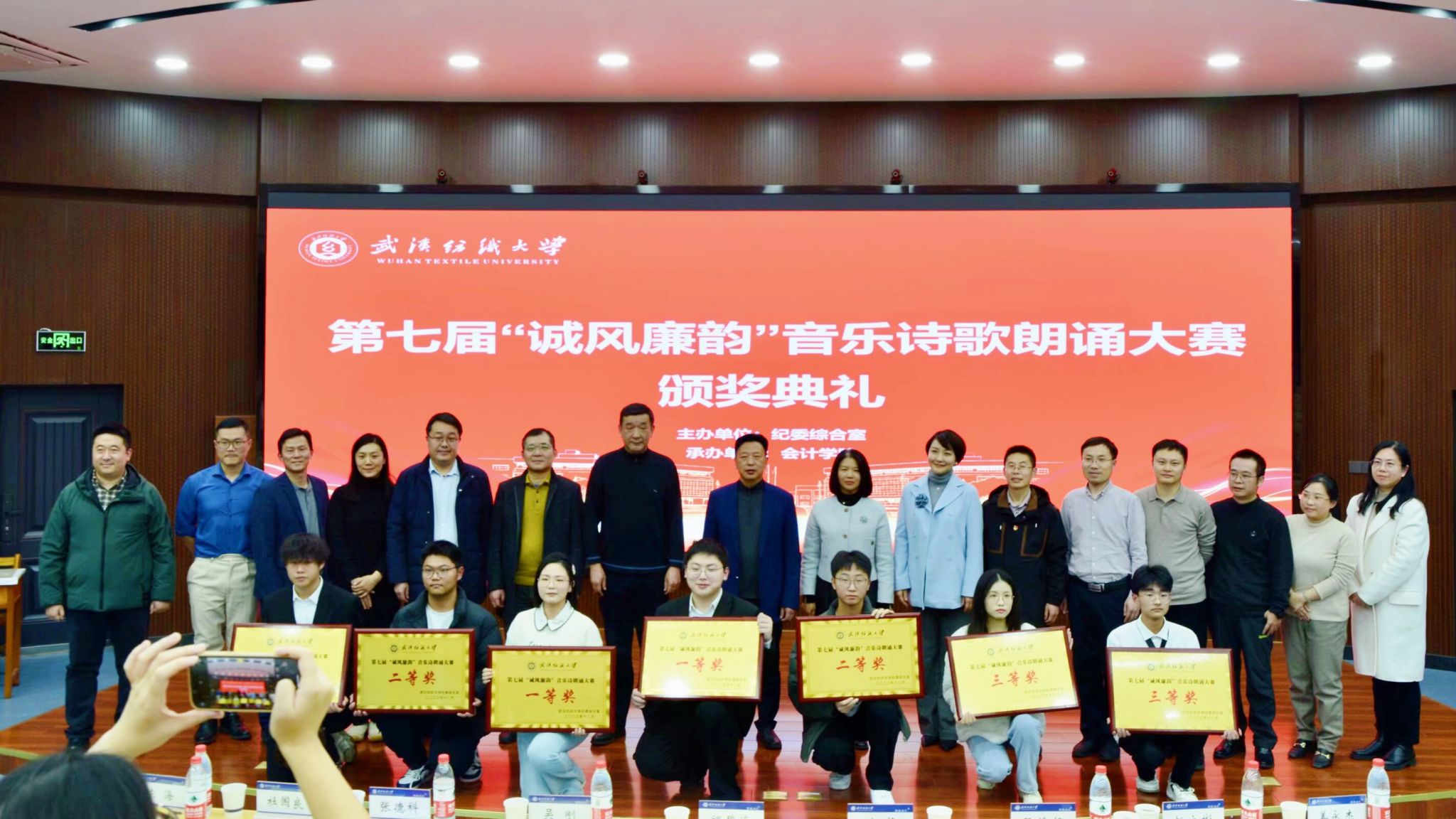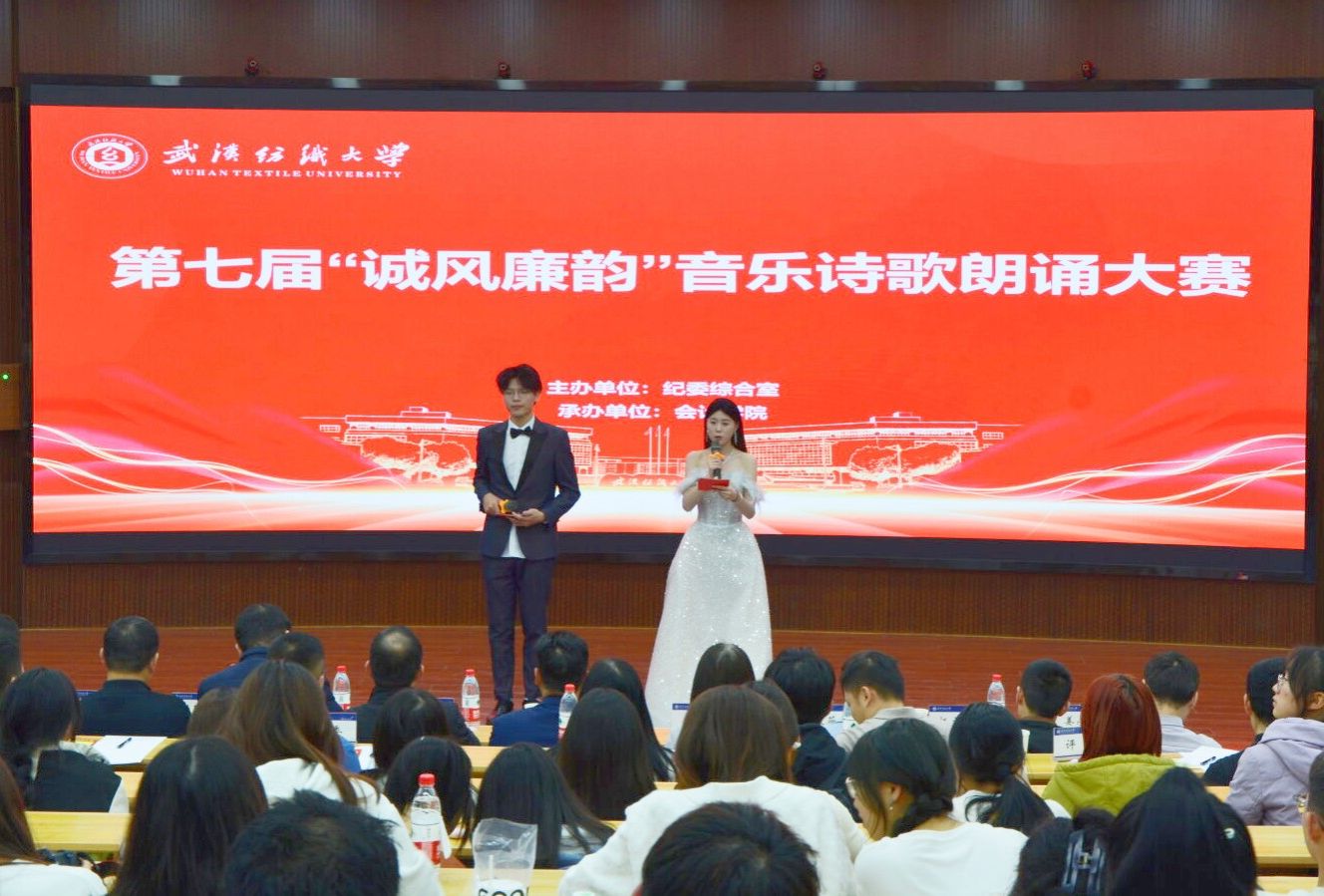 12月7日晚,由校纪委综合室主办,yl23455永利官网、青廉社承办的武汉纺织大学第七届“诚风廉韵”音乐诗歌朗诵大赛决赛在阳光校区崇志楼T201报告厅举行。校党委常委、纪委书记、监察专员程碧海出席活动,宣传部、纪委综合室、财务处、团委等部门负责人以及yl23455永利官网领导班子全体成员到场指导。来自10个学院的决赛团队和200名学生代表参加了活动。本次大赛特邀5名青年博士担任评委。