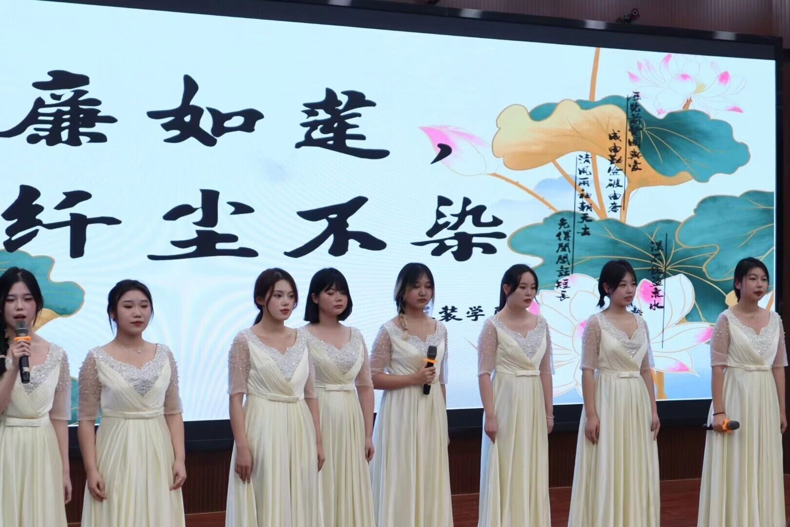 (服装学院以“廉如莲 纤尘不染”为题,将廉政文化融入曼妙的歌声之中)
