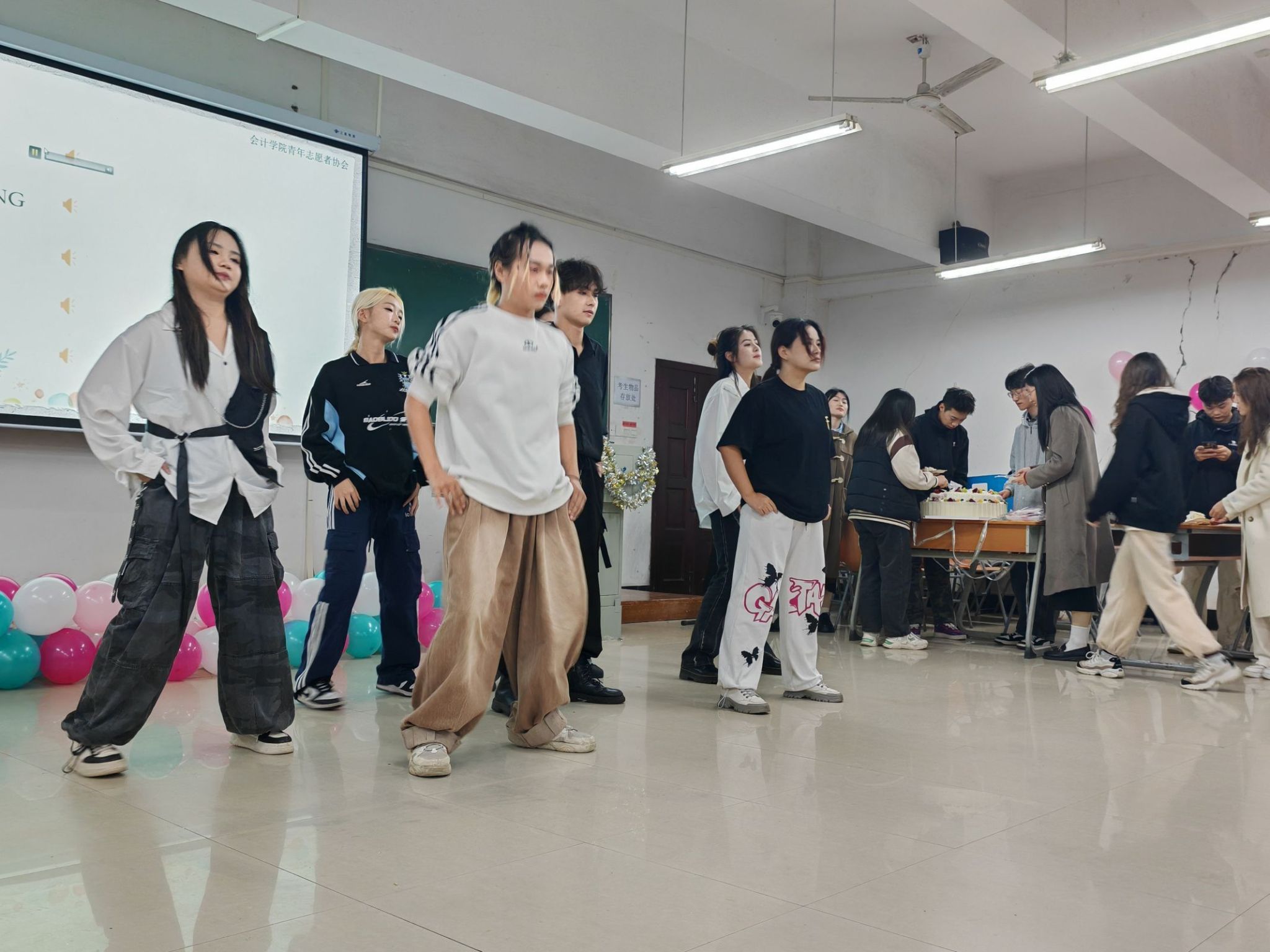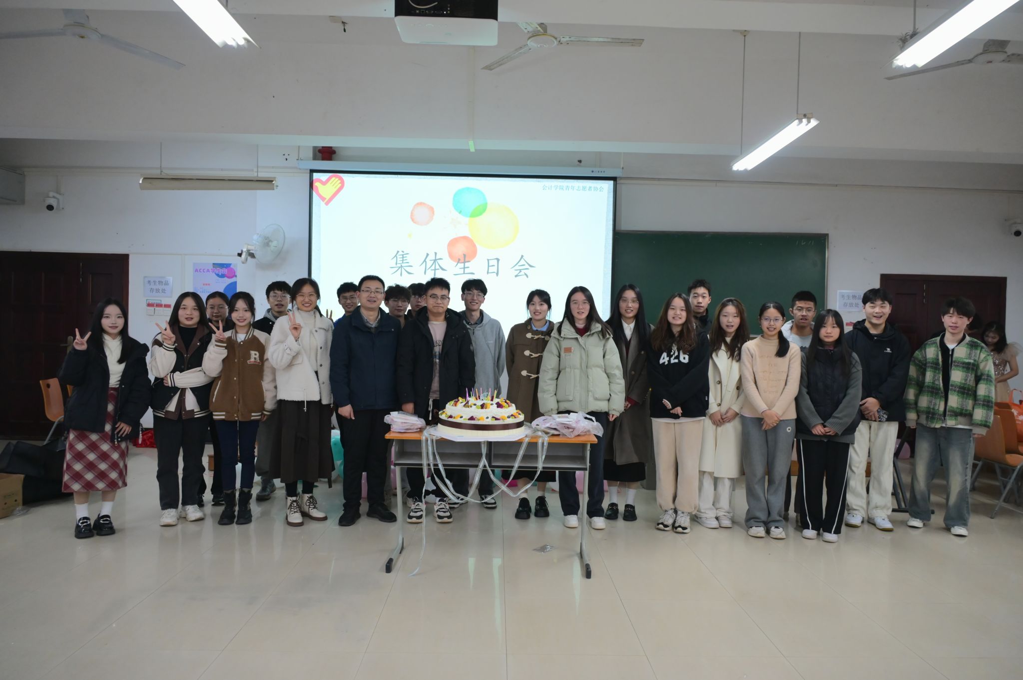 随后,现场的老师和同学们为12月过生日的志愿者唱起了生日歌,大家共同分享香甜可口的蛋糕。
