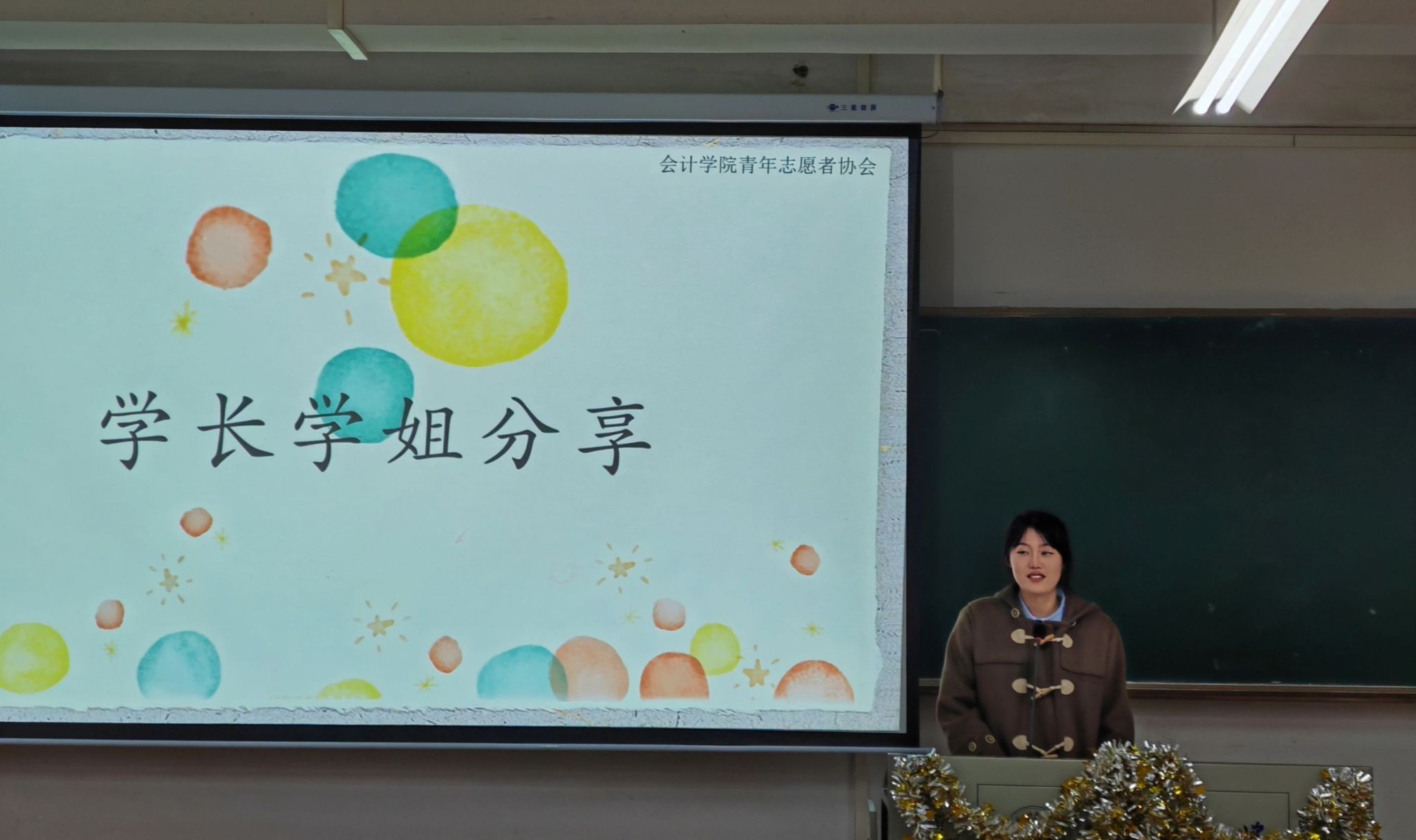 指导老师陈宇凡以及ACCA2101班邓晨、会计12102班陈圆依次上台,分享了自己在“益起阳光”志愿服务队工作以来的心得体会。她们表示,在学院的大力支持和全体同学的共同努力下,“益起阳光”成为了yl23455永利官网实践育人工作的品牌符号,同学们在成长进步的同时,也发挥兴趣特长和聪明才智,为服务队的发展贡献青春力量。陈宇凡说,“‘益起阳光’具有强大的凝聚力,很多同学虽然不在服务队里任职了,但依然保持着志愿者的赤子之心,积极参加各项基层实践活动。”