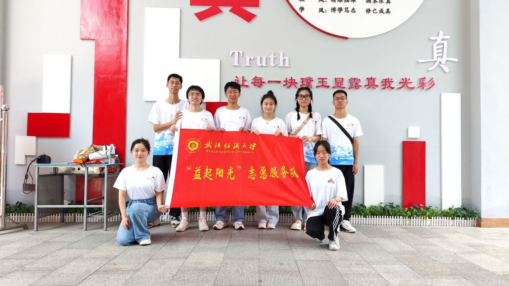 今年暑期,“益起阳光”志愿服务队的51名志愿者深入湖北省武汉市、咸宁市、襄阳市等地的小学、社区和农村,开展“七彩假期·绘出了不起的梦”夏令营。服务队围绕思想引领、文明生活、身心成长、科技创新、快乐学习、艺术素养、文化传承等主题,设计出了三十余堂素质教育趣味课程,陪伴两百余名少年儿童度过充满欢声笑语的“七彩假期”。