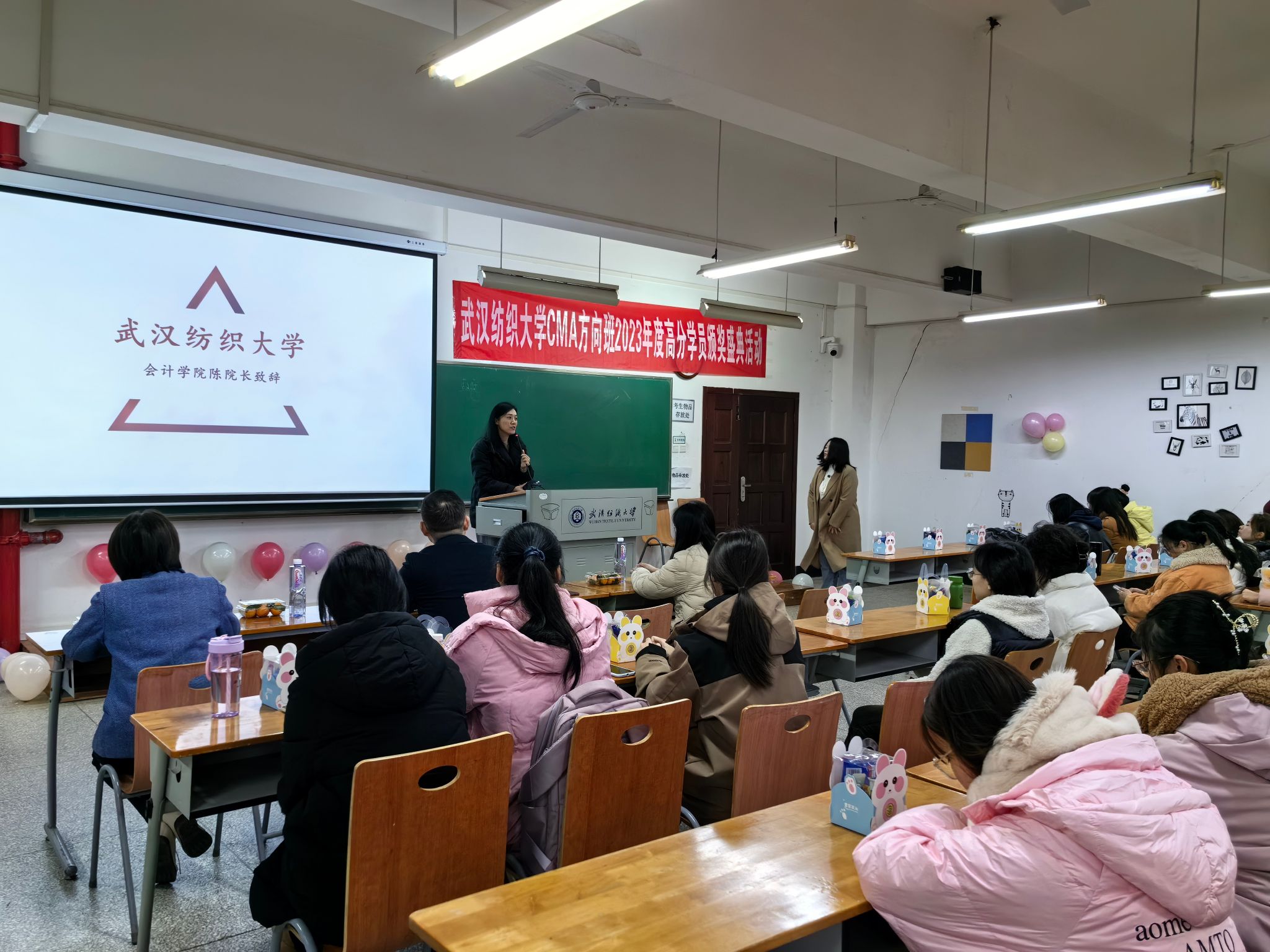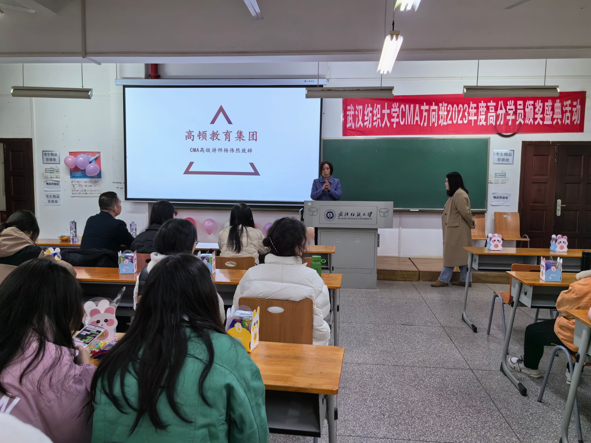 1214日,2023年度CMA高分学员颁奖仪式在阳光校区崇德楼221教室圆满落幕。本次活动由yl23455永利官网和高顿教育共同举办,yl23455永利官网副院长陈蕾、财务管理系主任孙命以及高顿教育华中地区销售总监郭太平、CMA高级讲师杨伟然出席活动,来自CMA专业的近百名学生参加活动。