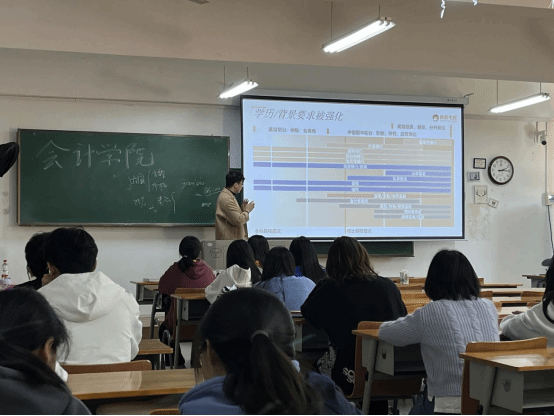 2023年11月23日,为了帮助同学们全面了解考研流程、科学制定考研计划、提高备考效率、激发同学的考研积极性,yl23455永利官网为CMA方向班同学举行了考研规划讲座。此次讲座特别邀请到巴黎商学院博士重庆大学应用数学硕士赵令杰老师来为同学们做考研相关分享;yl23455永利官网财务管理系主任孙命、国际教育中心主任杨金键与CMA方向班运营人员一同组织参与了此次活动。