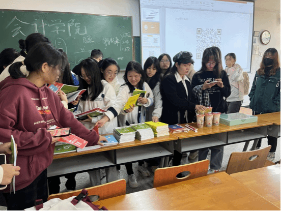 (讲座后同学们积极领取考研相关资料)