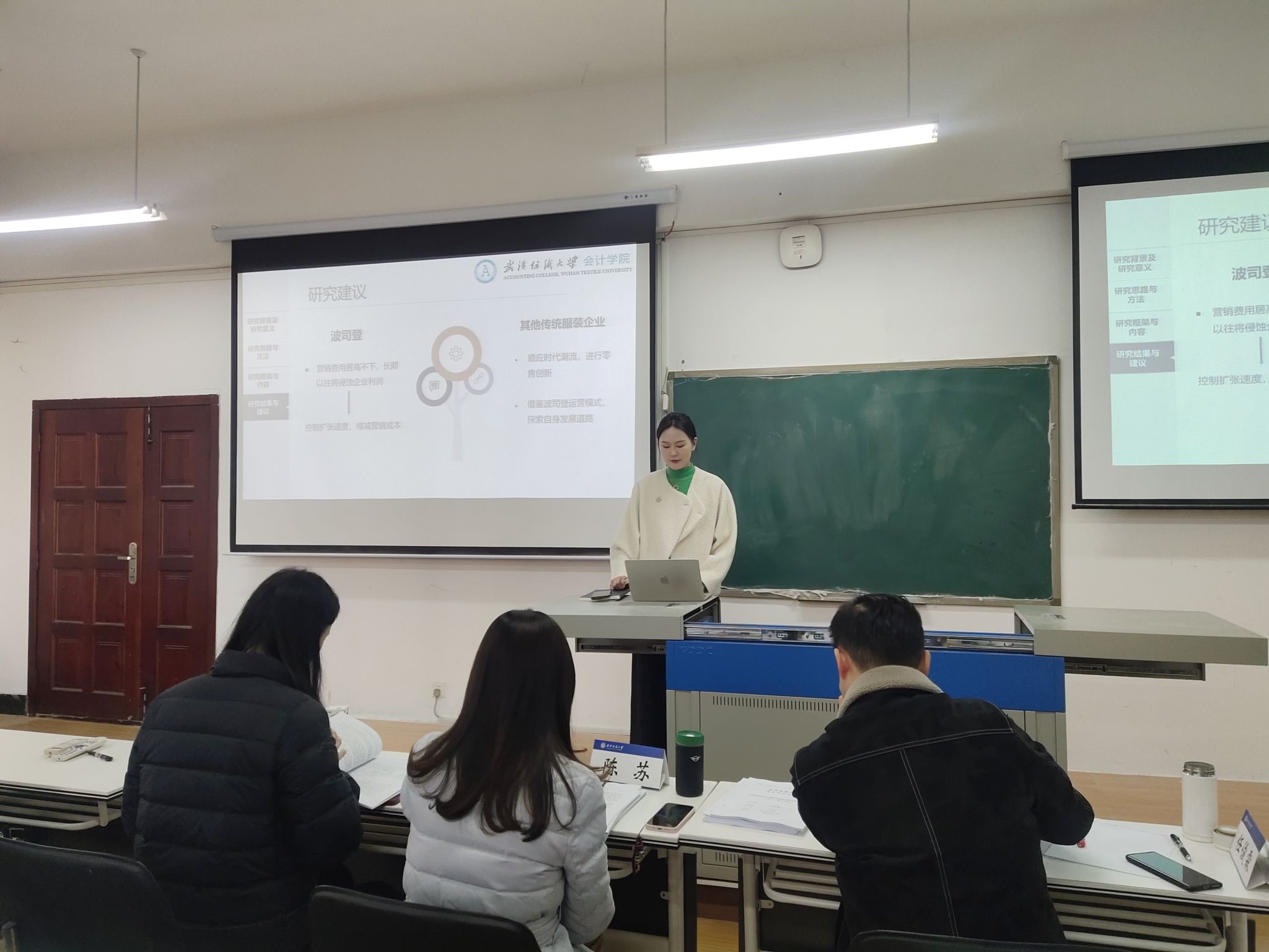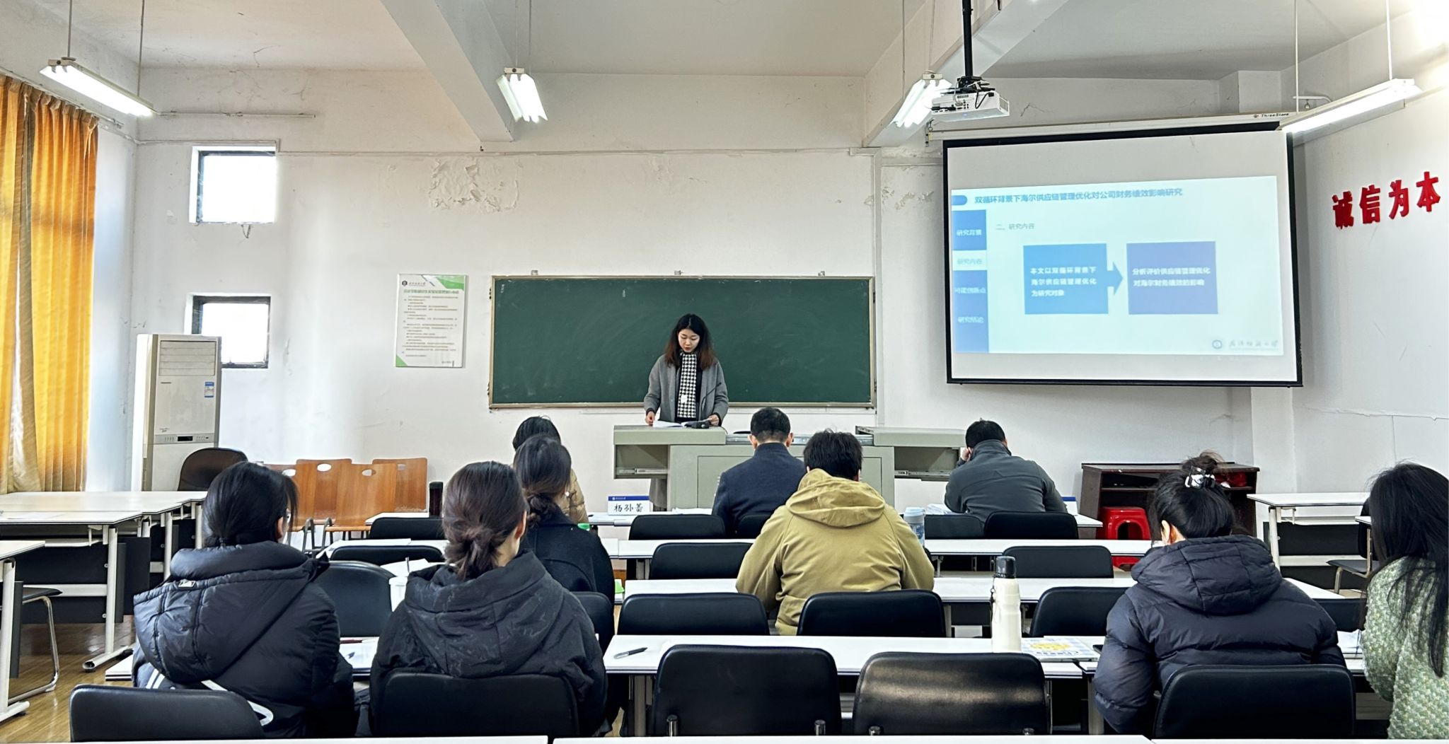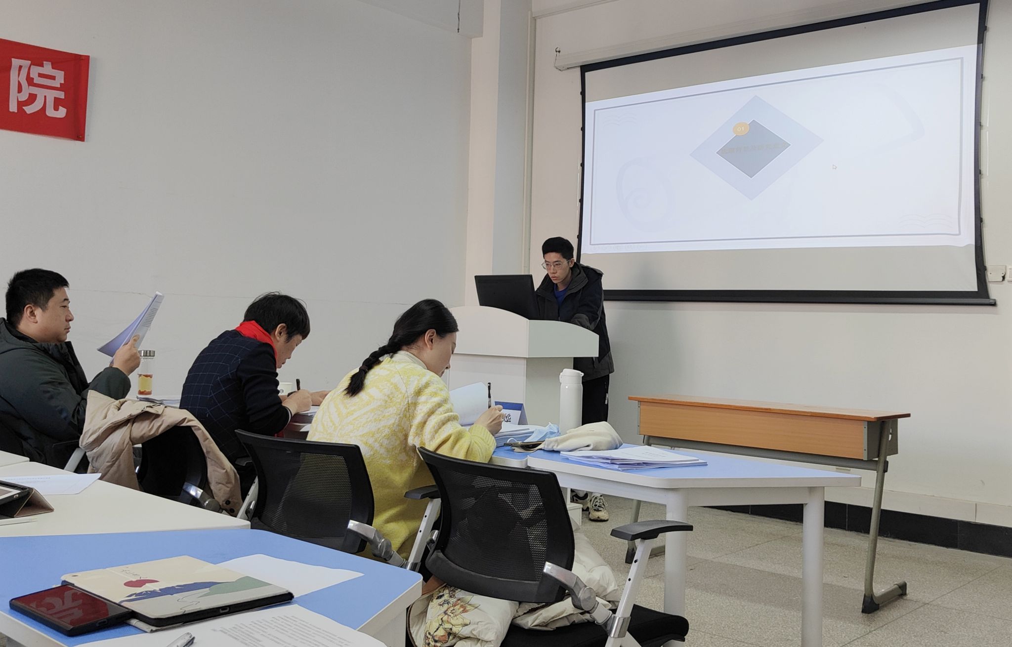 预答辩共分为9个小组,分别在崇德楼412室、415室、403室、404室、405室、406室、402室、303室及304室同步进行,每个预答辩小组由3名专业教师作为评委对学生进行指导点评。参与预答辩的研究生以PPT形式进行汇报,汇报内容涵盖论文选题背景、研究目的、研究方法、研究内容、研究结果、研究结论和创新点等方面。评委就论文的逻辑性、严谨性、合理性,以及论文格式、统计方法、实验数据等方面提出了宝贵的指导意见。