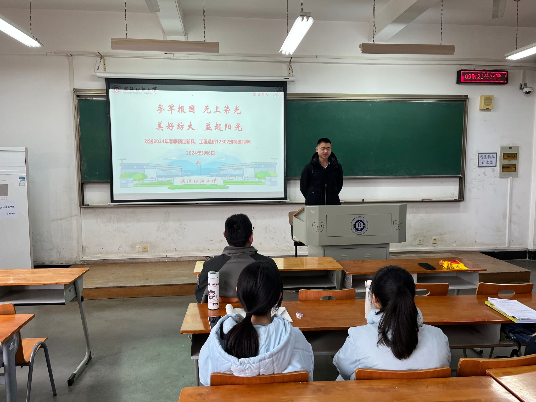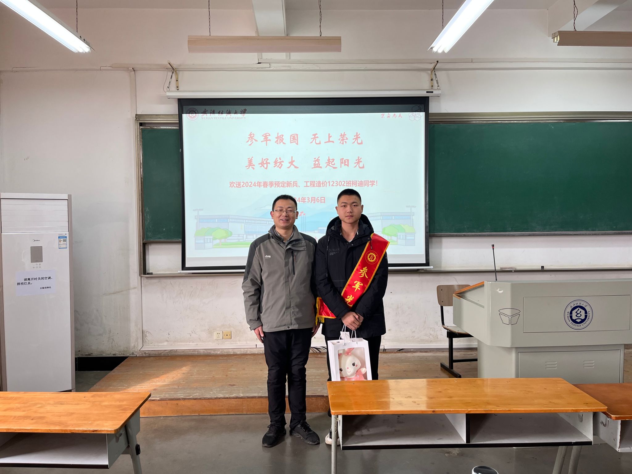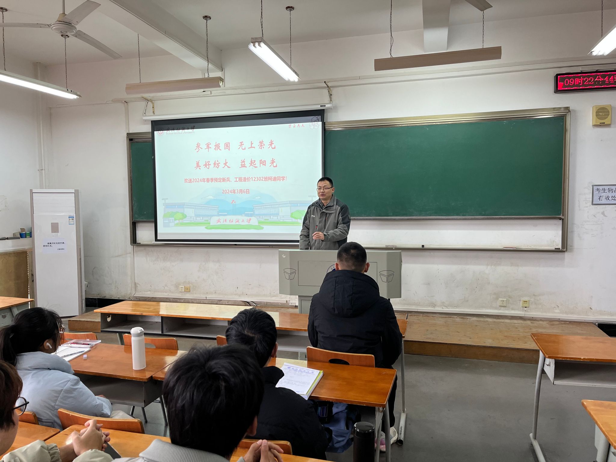 为鼓励更多同学树立崇高理想、立志参军报国,3月6日,yl23455永利官网在阳光校区崇志楼211教室召开2024年春季预定新兵交流会。院党委副书记古江波、辅导员和工程造价12302班全体同学参加活动