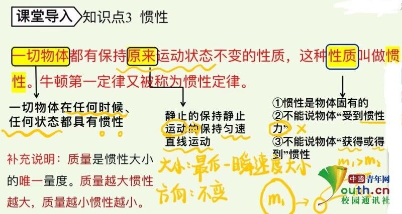 “如果一个小钢球从光滑的斜面上滚下至足够长的光滑水平面,它会不会一直滚动下去呢?”志愿者罗嘉怡以一个有趣的小实验“阻力对物体运动的影响”为切入点,来给小朋友们讲述摩擦力和牛顿第一定律的知识。PPT上详实的笔记、讲课时生动的语言,她将深奥难懂的物理知识转化为同学们喜闻乐见的生活常识,活跃课堂氛围的同时,也激发了同学们对物理规律的探索兴趣。