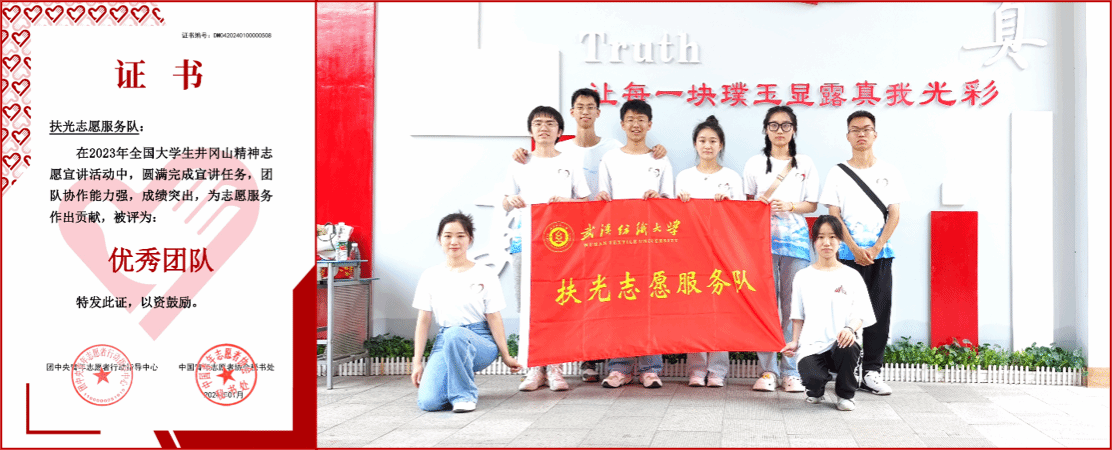 另悉,今年1月,yl23455永利官网扶光志愿服务队从全国1000支团队中脱颖而出,获评2023年全国大学生井冈山志愿精神宣讲活动优秀团队(全国评选100支团队)。