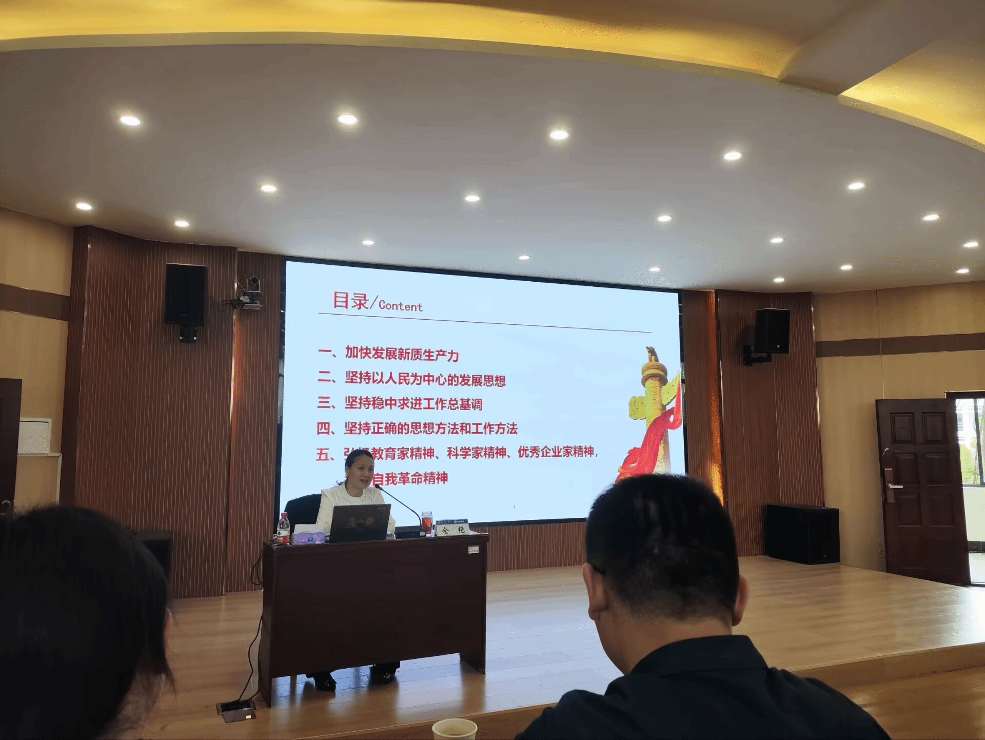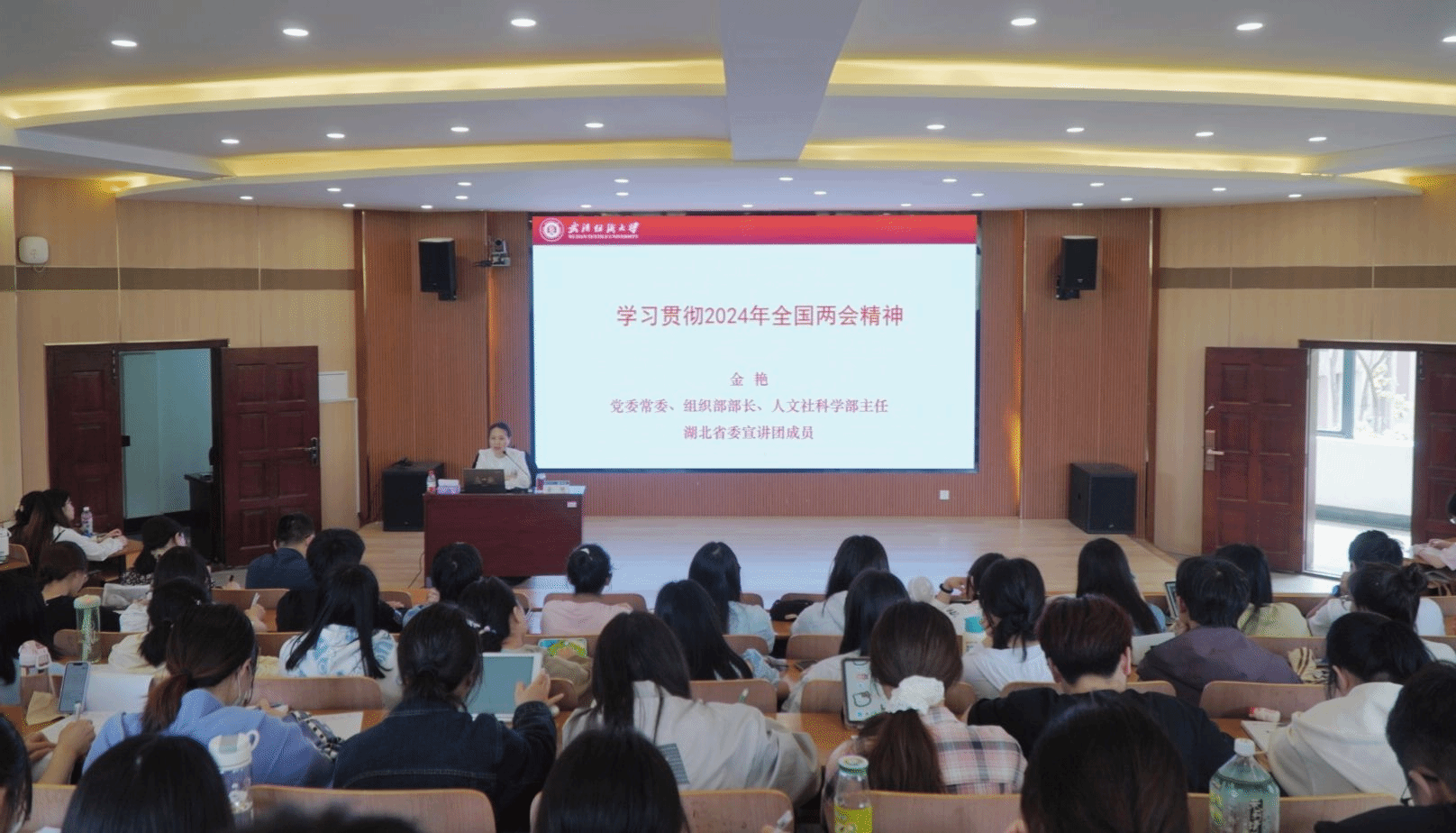 金艳以“新质生产力培育”为切入点,引导同学们关注科技创新动态,积极参与科研项目,提升个人竞争力。与传统生产力形成鲜明对比,新质生产力是创新起主导作用,摆脱传统经济增长方式、生产力发展路径的先进生产力,具有高科技、高效能、高质量特征。金艳强调在知识经济时代,掌握前沿科技、具备创新能力是决胜未来的关键。她深入浅出地解读了“以人民为中心”的理念,倡导同学们关注社会民生,将所学知识服务于人民福祉,做有温度、有担当的经世济民之才。在谈及“稳中求进策略”时,她告诫学子们面对学业与职业规划中的压力与机遇,要保持冷静,善于平衡,稳健成长。金艳着重阐述了“科学思维与务实态度”的重要性,指出严谨逻辑、问题意识及实事求是精神是当代大学生的必备素养,应在学术研究与实践中加以培养。最后,她激励大家弘扬教育家的敬业精神、科学家的求真精神与企业家的创新精神,勇于自我革新,不断提升自我,以适应时代发展,肩负起推动社会进步的历史使命。