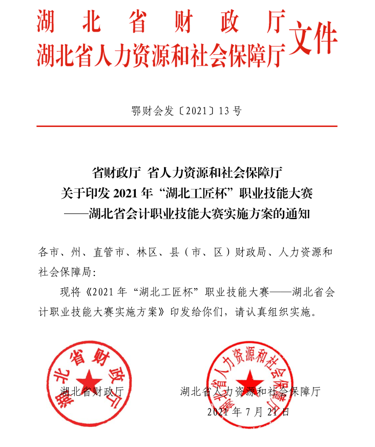 为促进我省会计人才队伍建设,弘扬工匠精神,培养新时代高素质会计技术技能人才,省财政厅、省人力资源保障厅决定联合举办2021年“湖北工匠杯”职业技能大赛湖北省会计职业技能大赛。