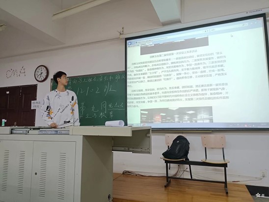 中国共产党武汉纺织大学第二次代表大会是纺大在建党百年之际,在湖北加快“建成支点、走在前列、谱写新篇”的新形势下召开的一次重要会议。为进一步学习宣传学校第二次党代会精神,10月24日,yl23455永利官网各团支部在阳光校区7栋教学楼开展了以“学习我校第二次党代会精神”为主题的团日活动。