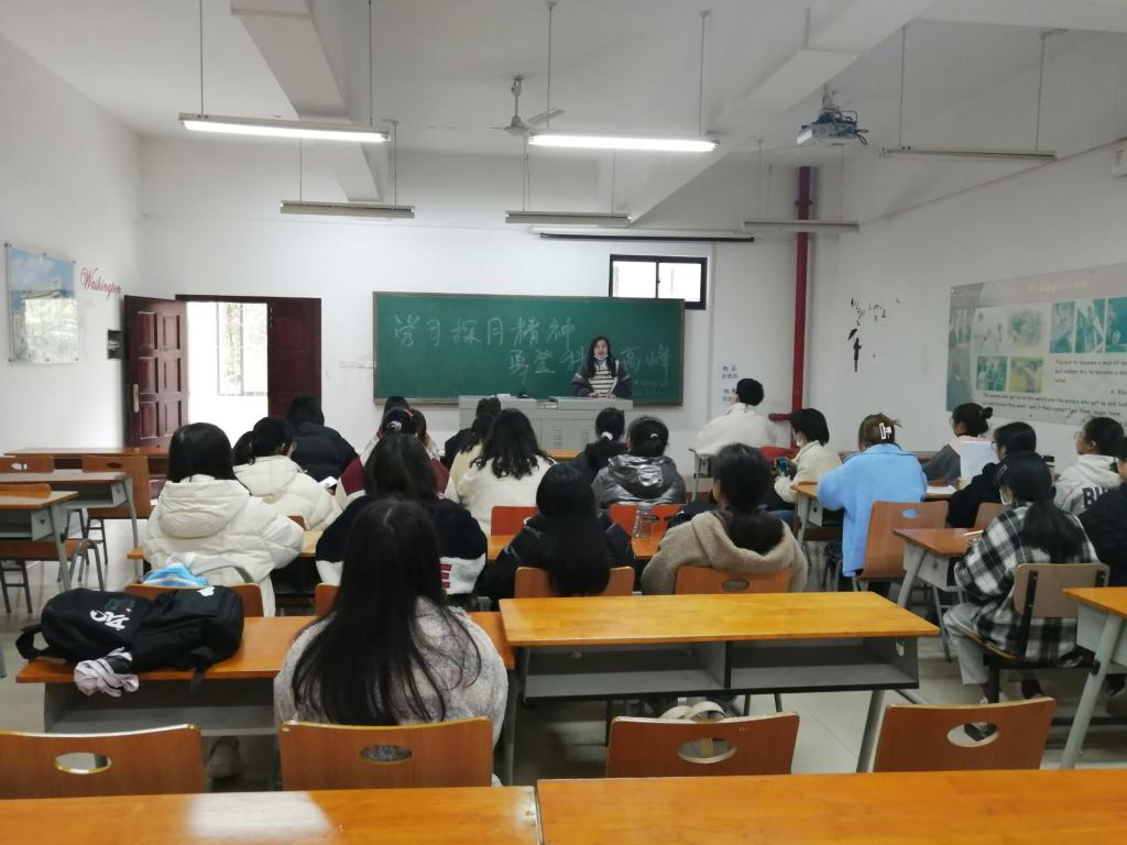 本次团日活动主要围绕学习共青团十八届五中全会精神、全国脱贫攻坚总结表彰大会精神以及习近平总书记会见探月工程嫦娥五号任务参研参试人员代表时的重要讲话精神三个主题展开。首先,在各班团支书的带领下,全体同学起立歌唱团歌,激昂又饱含感情的歌声在教室响起,展现了当代共产主义青年的壮志豪情,团日活动正式开始。