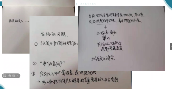 武汉大学第23届研究生支教团四川分队的朱竹燕队以“壮大村集体经济,打通最后一公里”为主题,用抱团发展、互利共赢、因地制宜、特色产业等关键词对服务地的集体经济产业园进行了详细介绍。随后,杨卓然和江文昶分别就基层治理和乡村教育问题分享了自己的见解。