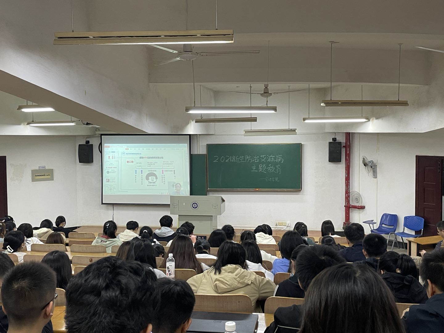 为普及艾滋病防治知识,加强青年大学生的防“艾”意识,营造健康向上的校园环境,近日,yl23455永利官网组织全体学生收看了“防艾”科普教育讲座。2021级学生在阳光校区7栋教学楼T101教室集中收看,其他年级学生通过手机端在线收看。