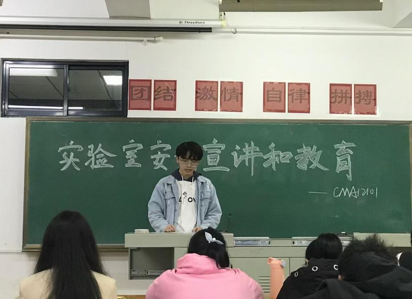 此次班会先由各班班长宣读实验室安全管理条例规定,让同学们清楚认识到电器设备如何使用、仪器设备如何规范操作、意外事故发生如何处理等注意事项,加强同学们的安全意识,做到“防患于未然”,在学习的同时注重规范操作与安全保护。