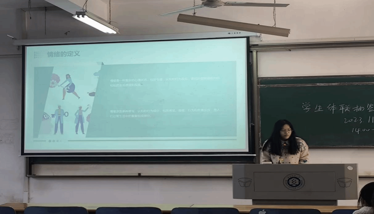 主讲人首先介绍了情绪的定义,种类以及作用,情绪可以帮助我们适应环境,社交沟通,激发动机,学习和记忆等,从而强调情绪对心理方面的重要性。然后主人又从自我认知,情绪表达,心理建设三个方面来介绍情绪调节方式,要了解,观察,分析自己的情绪,并准确,适时,在尊重他人的情况下表达情绪,做好心理建设。同学们有必要了解情绪调节策略⁚积极思考,掌握放松技巧以及适应性行为。情绪调节的应用可以帮助同学们提升生活质量,提高工作效率,促进改善人际关系。