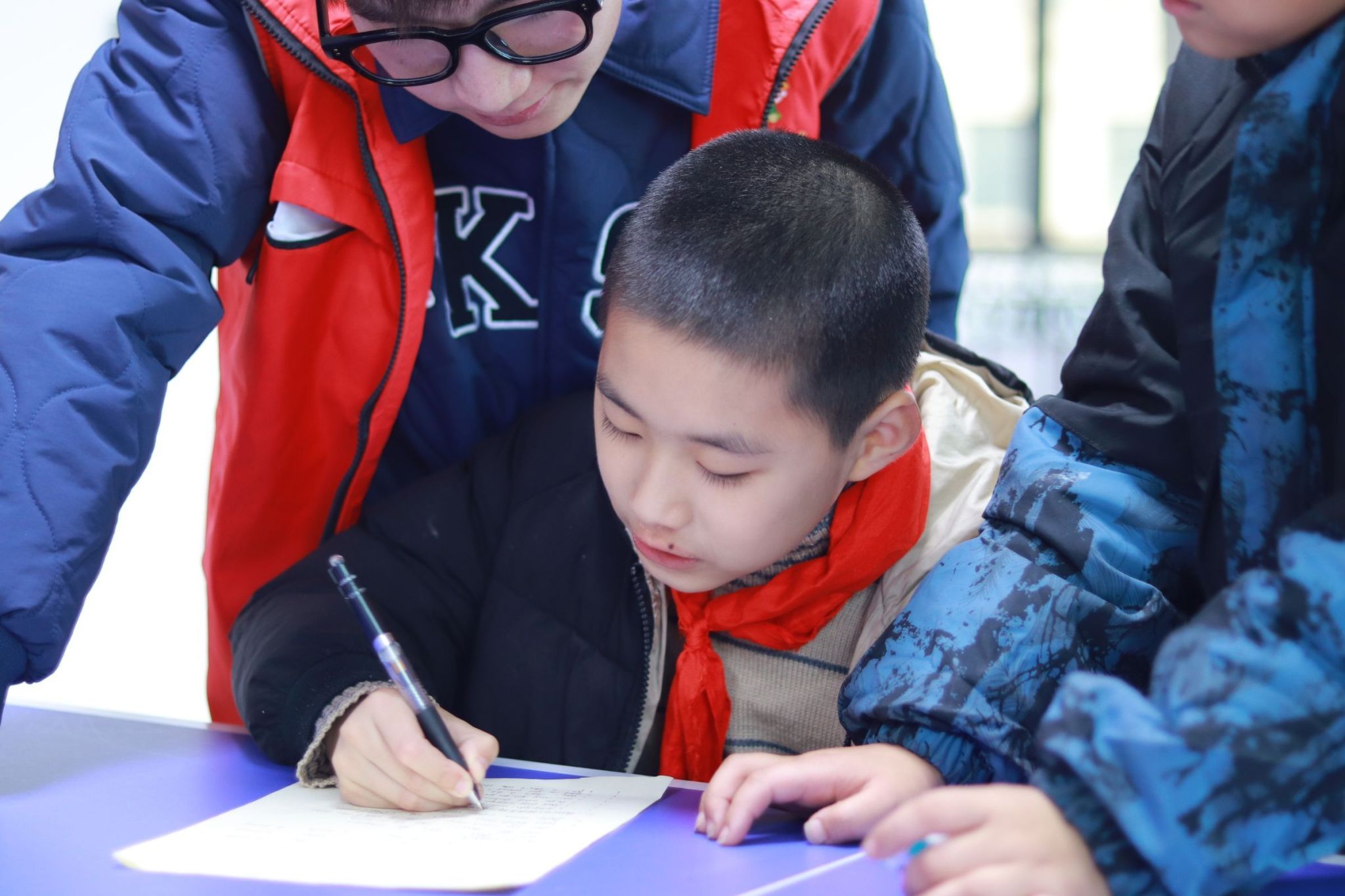 图一为志愿者辅导小朋友作业