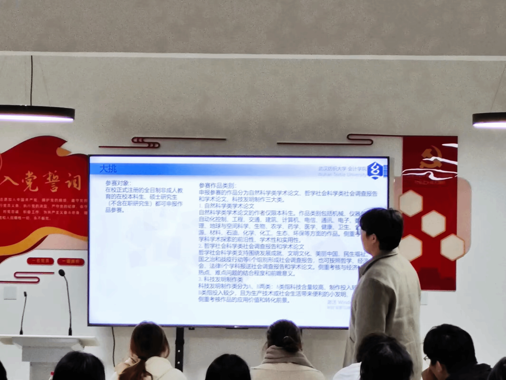 此外,每场会上还进行了问答环节。各位新生围绕挑战杯积极提出自己的见解以及疑问,主讲人同学一一解答,从而进一步加深新生们对挑战杯的理解,将现场氛围推至高潮。陈天泽同学还寄语各位新生“若你决定灿烂,山无遮,海无拦”,对大家的未来给予厚望。