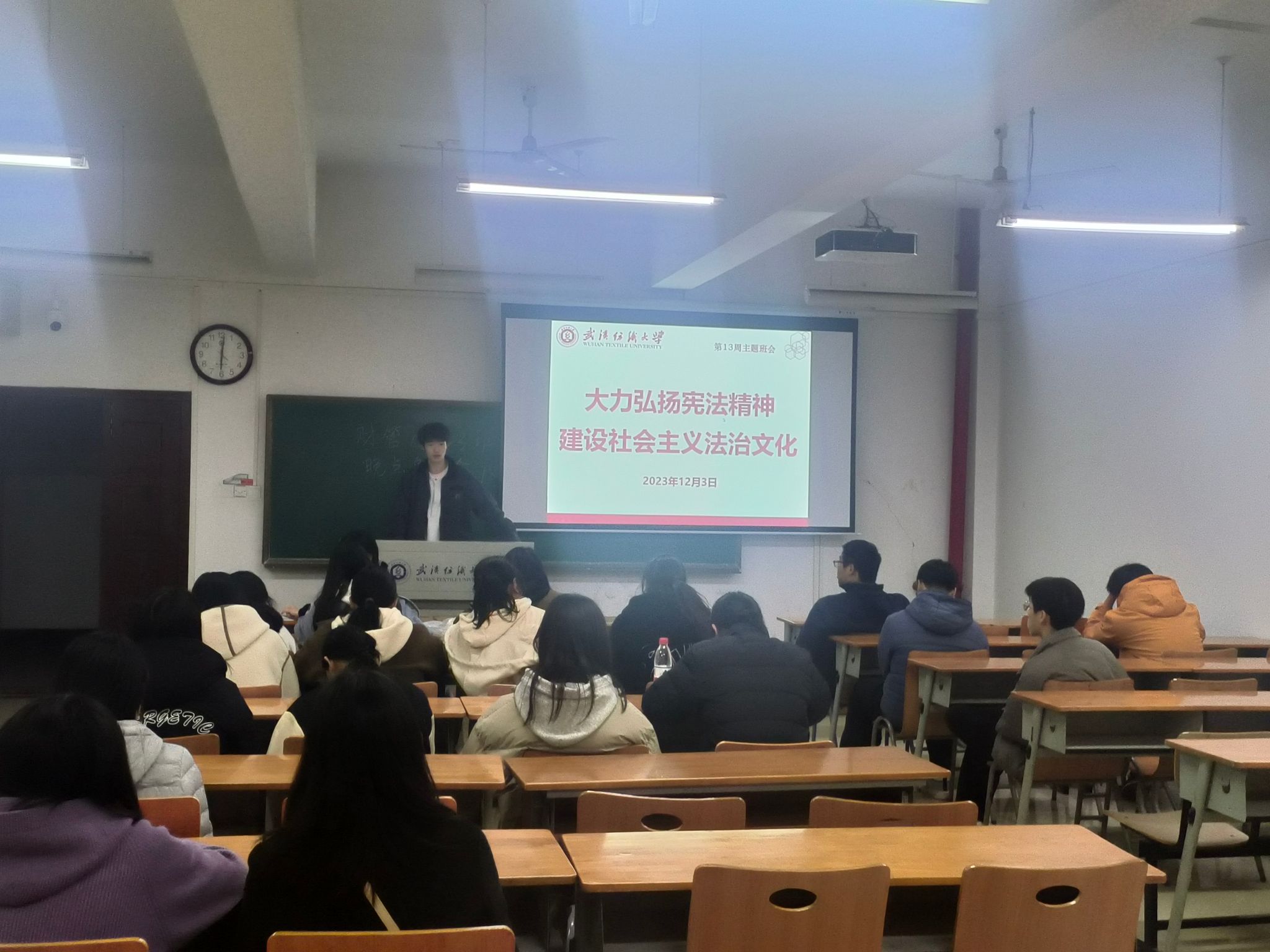 2023级各班班主任组织召开晚班会。各班班主任利用班会核实学生在校情况,引导同学们了解宪法、学习宪法精神,并详细阐述了大学生和宪法息息相关,鼓励同学们培养法治精神。随后,班主任深入了解同学们期末复习情况,提醒同学们查漏补缺,全身心投入期末考试。