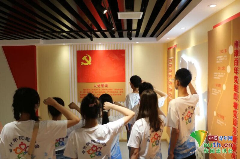 图为实践团成员一起重温入党誓词。中国青年网通讯员 郭振宇 摄